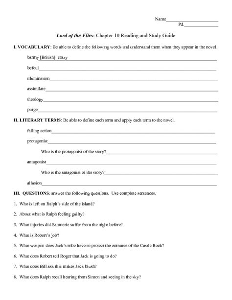 Read Online Lord Flies Chapter 10 Reading Study Guide Answers Doc