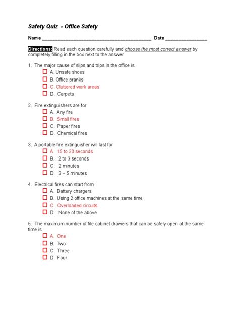 Read Online Office Safety Quiz Questions With Answers Doc